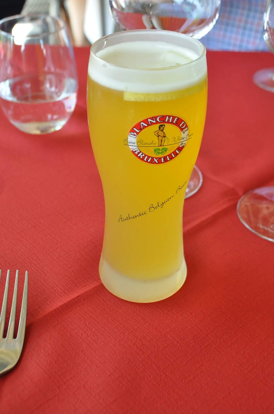 We were seated at a terrace table just next to the large, grassy lawn. Everyone at our table decided to start with a house aperitifs, my selection is shown below. I don't like beer of any kind but nevertheless, I chose the aperitif with some white beer. While it wasn't bad, it wasn't my favorite of all time, by any means.